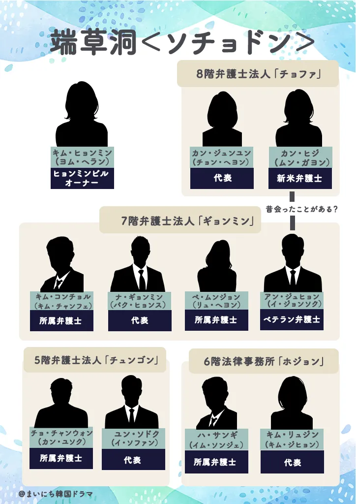 瑞草洞<ソチョドン>の相関図をまとめました。見づらい場合は画像をタップしてご覧ください。