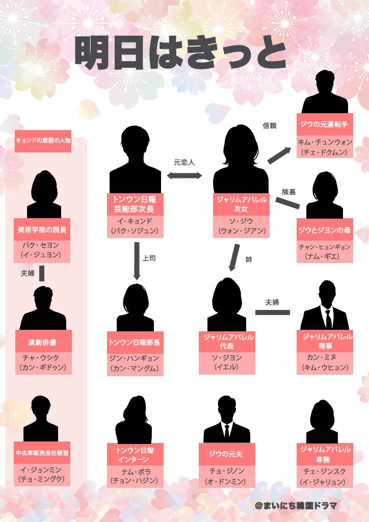 韓国ドラマ『明日はきっと』の主要なキャストを相関図を以下にまとめました。